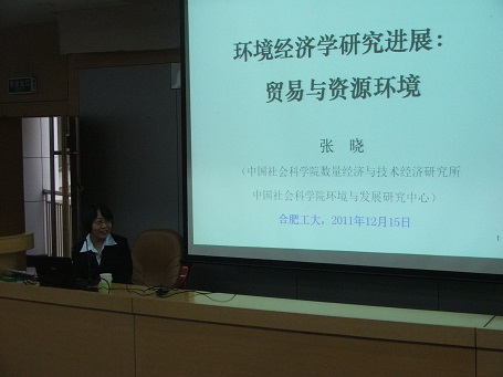12月15日下午,中国社会科学院环境与发展研究中心副主任、数量经济与技术经济研究所环境经济研究室主任张晓教授在学术会议中心二楼小报告厅作题为《环境经济学研究进展:贸易与资源环境》的学术报告。