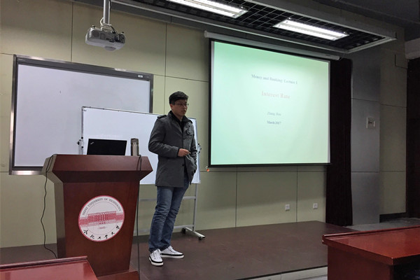 3月13日下午2点来自美国Southern Methodist University的张任博士在英国威廉希尔唯一官网翡翠湖校区建艺楼703室举行关于“Financial Markets and Institutions”的系列讲座,威廉希尔官网金融学专业的同学们和老师参加了此次讲座,本次讲座将持续两周。
