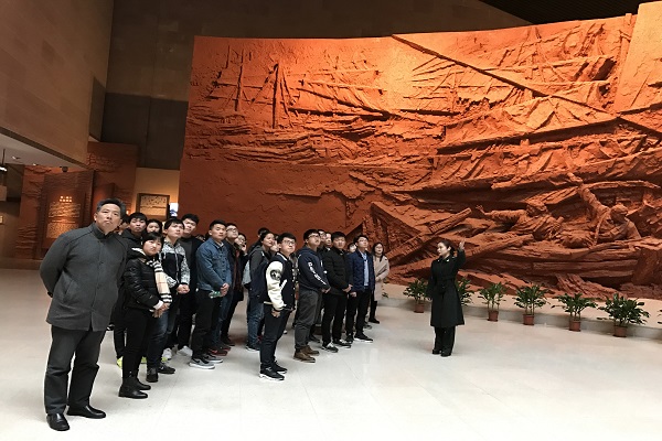 在渡江战役纪念馆,同学们认真聆听了讲解员讲解渡江战役的全部过程,了解到渡江战役战役历时四十四天,共歼灭国民党军四十三万余人。解放了国民党统治中心以及苏南、皖南、浙江、闽北、鄂东、赣东北等广大地区,为人民解放军迅速向全国进军,开辟了胜利的道路。也同时学习了中国共产党渡江战役的历史及诸位革命烈士的光辉事迹。让同学们亲身感受到了那段惊天动地的革命历史和激情燃烧的岁月,仿佛看到了革命先烈们在战场上英勇奋战,为实现自己的美好夙愿抛头颅、洒热血的场景。