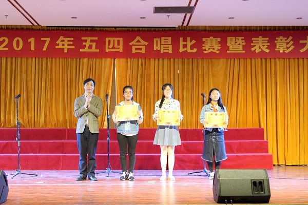 比赛环节结束后,对获得学院五四表彰“优秀共青团员”、“优秀共青团干”、“先进班级团支部”和“优秀团支书”的先进个人和先进集体及获得五四合唱比赛的优胜班级进行表彰,与会领导为获奖集体和个人颁发了奖状和证书。
