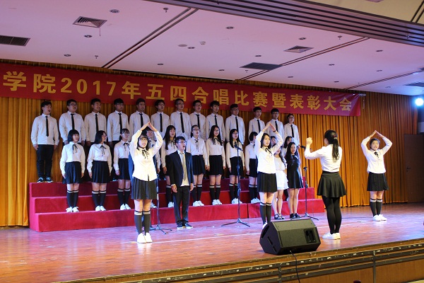 本次合唱比赛暨表彰大会积极响应落实学校“一学一做”教育实践活动的要求,通过合唱团歌、重温入团誓词等环节,让青年团员熟悉团的组织和仪式,增强团员意识,使团员更像团员。通过五四民主评议和表彰,在青年团员中选树典型,加强对广大同学的价值引导。合唱比赛以班级集体形式参加,旨在传承和发扬五四爱国精神,激发青年学生的爱国和强国情怀,同时极大提升了同学们的班级荣誉感和责任感。