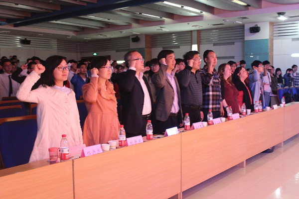 为纪念五四运动98周年,弘扬五四运动精神,展现经院学子的青春风采,4月21日晚,威廉希尔官网五四合唱比赛暨表彰大会在翡翠湖校区图书馆报告厅举行,校团委书记南国君、党委学工部副部长尚广海、院党委副书记胡晓浩及相关负责人与我学院2015级、2016级全体共青团员共同参加了此次活动。