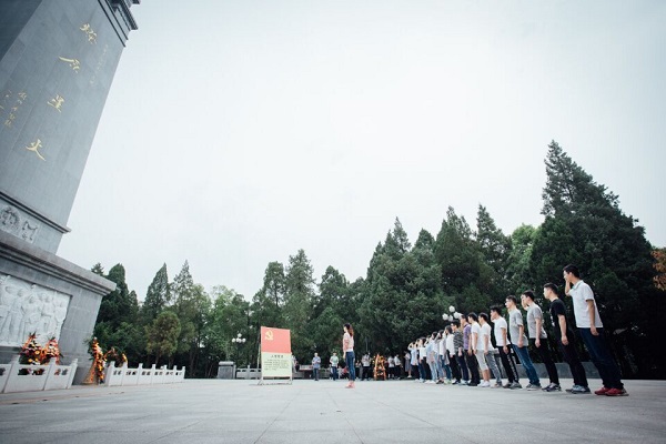 在爱国主义教育示范基地金寨县红军广场,全体成员首先来到由刘伯承元帅亲笔题词“燎原星火”的革命烈士纪念塔前,列队向纪念塔庄重地鞠躬致敬,向民族英雄、人民功臣们献上大家深深的敬意,并在领誓人的带领下重温入党誓词,缅怀为新中国成立奉献了自己生命的革命先烈。随后同学们在烈士纪念馆讲解员的引导下,怀着对革命先辈的崇敬之心,对历史的敬畏感,认真聆听一批批金寨烈士们不惜抛头颅洒热血的英雄壮举,重温战斗历程,传承革命精神。在革命博物馆中,同学们瞻仰了革命烈士的珍贵遗物,观看了革命先烈浴血奋战的历史图片和文字资料,感受先烈们不畏牺牲、英勇抗战的革命精神,也激励同学们要用坚韧不拔、勇往直前的革命精神投身到现代改革开放、建设美好家园的事业中。
