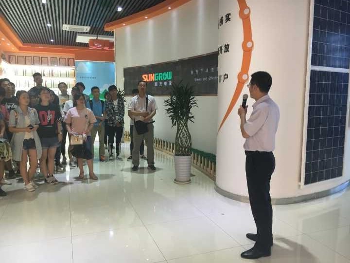 上午到达阳光电源股份有限公司后,公司总经理与研发经理引领我们一行人参观了阳光电源的产品展示厅,包括光伏逆变器、风能变流器、太阳能储电板等。车间主任还带领我们参观了研发及装配车间,以便学生更加了解熟悉新能源的现代业务及未来发展方向。