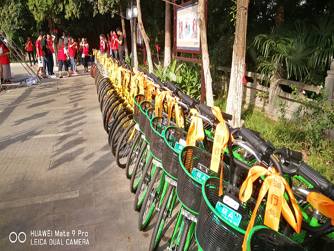 早上七点钟,经院25名同学准时在226公交车站等候。虽然起得早,但每位同学的脸上都看不出疲倦感,每个人都在为即将举办的志愿者活动蓄势待发。此次活动的举办地点是包河公园清风阁广场,是合肥一个著名的历史文化景点,靠近市中心,共享单车在这个区域数量庞大,选择这里作为活动的举办地也是有所考究。作为到达最早的队伍之一,经院志愿者们签完到就投入前期的准备活动中,无暇欣赏周围美景。搬车,摆车,给车子系上写着“文明骑行”标语的黄丝带,大家忙得热火朝天。
