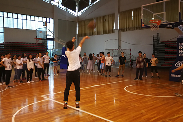 由于比赛强度过大,老师和同学们的体能消耗很快,在中场休息的时候,进行了三分投球比赛,一方面恢复体能,保持手感,另一方面让观众也参与进来,活跃场上气氛,有好几位女生也报名参赛了,并且都有神奇的表现,给同学老师们带来了欢乐。