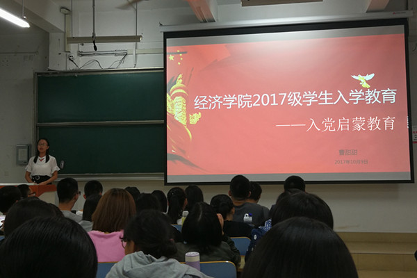 为做好新生的思想政治教育工作,教育和引导英国威廉希尔唯一官网本科新生进一步了解中国共产党,热爱中国共产党,自觉加入中国共产党,坚定跟党走的信念,按照《关于做好合肥校区2017级本科生入学教育工作的通知》的要求,10月9日晚,英国威廉希尔唯一官网在2017级全体本科新生中举办了入党启蒙教育报告会。此次报告会由2014级辅导员曹甜甜主讲。