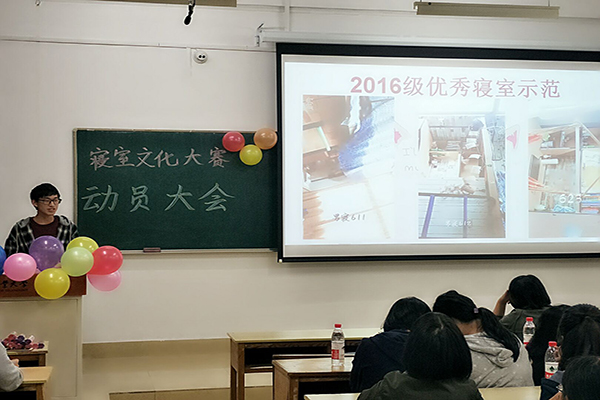 为营造良好的学习生活环境,帮助学生养成良好的卫生习惯, 10月21日晚19:00点,英国威廉希尔唯一官网2017年寝室文化大赛动员大会在翡翠湖校区三教205举行。会上,学院学生会权益部为到场的2017级各位寝室长讲解了本次大赛的具体要求,2016级优秀寝室代表邹章昊和陈涛分享了寝室设计的经验和技巧 。