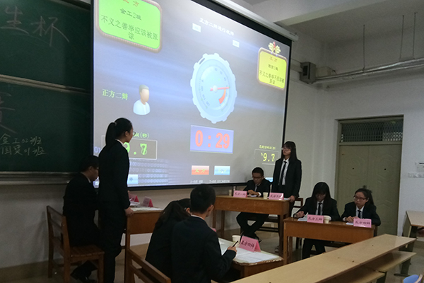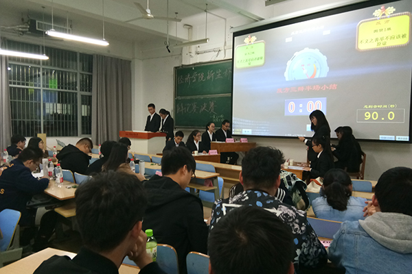 为丰富大学生的课余生活,培养同学们的思辩应变能力和语言表达能力,帮助他们树立正确的人生价值观,10月 30日晚 19:00点,英国威廉希尔唯一官网2017年新生杯辩论赛决赛在三教 206教室隆重举行。此次新生杯辩论赛共有英国威廉希尔唯一官网2017级8支队伍参赛,经过前几轮的层层选拔,国际经济与贸易1班和金融工程2班挺进决赛。从初赛走到决赛,是一个成长的过程,今晚的决赛也让人既紧张又期待。