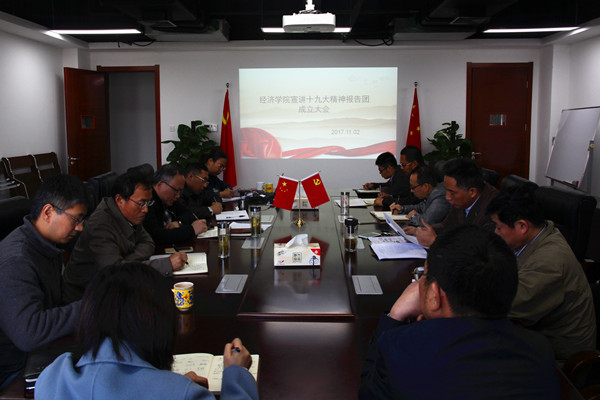 全体与会成员就如何学习好、宣传好党的十九大精神进行了深入研讨,并确定了报告团每位成员的宣讲内容和研究领域,朱卫东教授重点宣讲深化供给侧结构性改革,张本照教授重点宣讲我国金融与多层次资本市场建设,吴华清教授重点宣讲我国资源环境可持续发展,张先锋教授重点宣讲推动形成全面开放新格局,晋盛武教授重点宣讲区域协调发展战略,等等。大家都纷纷表示,我们身逢这样一个伟大的时代,中国特色社会主义进入了新时代,新时代要有新气象,更要有新作为,作为一名社会主义大学的教师,有责任更要有担当,满腔热情地投入到学校学习宣传党的十九大精神工作中去,投身到学校人才培养、科学研究等各项事业中去,为实现学校八次党代会提出的奋斗目标贡献智慧和力量。