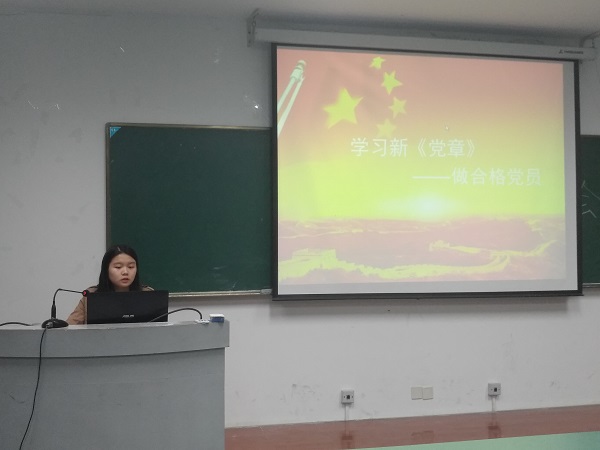 此次会议由支部书记朱赛华主持,从《党章》的概述、解读新《党章》以及学好用好《党章》三部分带领大家全面深入的学习了新《党章》。支部书记首先从党章的地位、作用以及为什么要修改党章等方面向大家做了简要介绍,并带领大家回顾了中共一大至十八大对于《党章》所做的修改。接着从党章的每一章节仔细解读了十九大对党章内容所做的修改。十九大通过的《中国共产党章程(修正案)》,全面总结以习近平同志为核心的党中央,坚持和加强党的领导、全面从严治党的新鲜经验,充分体现党的十九大确立的重大理论观点和战略思想,对于新时代坚持发展中国特色社会主义,对全面加强党的建设、永葆党的先进性和纯洁性都具有重大意义,特别是将习近平新时代中国特色社会主义思想写入党章,实现党的指导思想与时俱进,反映了历史必然、时代所需、全党共识、民心所向。会议最后,朱赛华强调学习《党章》对于支部建设以及党员个人修养的重要性,并指出学习宣传贯彻党的十九大精神将是支部今后一个时期的首要任务。