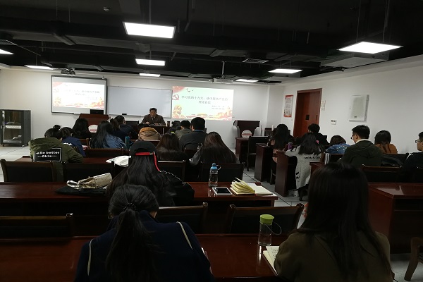 大会开始,胡甜甜同志汇报了此次党课支部党员参会的情况,并简要介绍了党课的流程和主要内容。会议过程中,与会党员和积极分子仔细聆听刘峰书记的党课内容,认真笔记,积极反思。刘峰书记从理论自信的源头说起,结合经济学的学科特性和学科内容融会贯通,深入浅出地将理论自信的部分娓娓道来。党课最后,刘峰书记叮嘱我们要将十九大报告读深读透,并培养对政治经济的敏感度,结合时政加深自我学习,用会议精神推动自我全面发展。