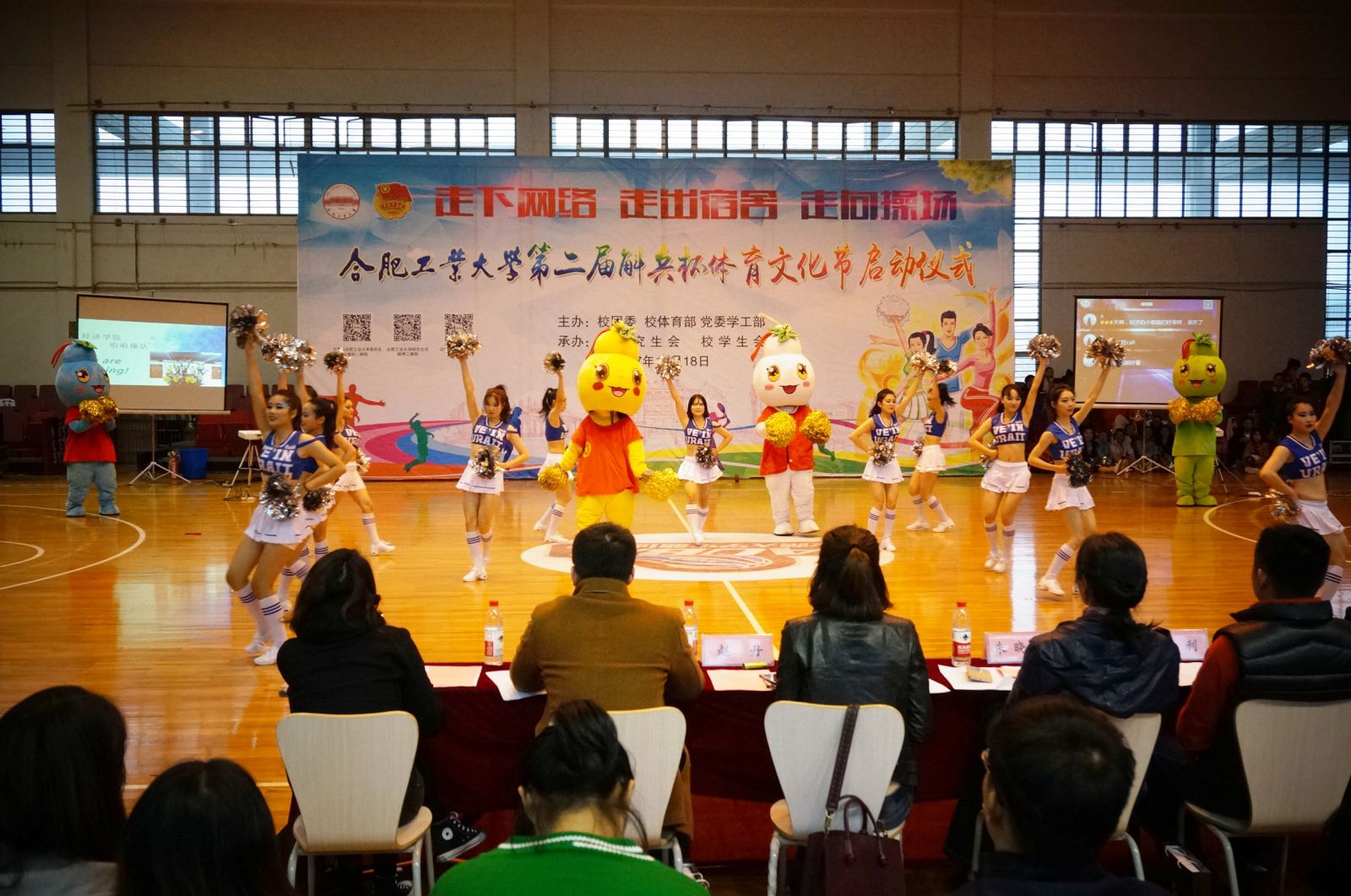 在万众瞩目下,威廉希尔官网12位啦啦操健儿们为同学带来了活力四射的表演。队员们整齐划一的步伐、张弛有力的动作展现新时代青年朝气蓬勃的气息,伴随着歌曲Bang Bang用自信的笑容感染全场气氛。其中穿插的一段爵士舞更是震惊全场,欢呼声不绝于耳。健儿们曼妙的身姿和性感的风度向全场展示了辛苦排练后的完美成果。4只可爱玩偶的介入更是引发全场爆点,无缝的配合诠释了威廉希尔官网学子拼搏进取、团结一致的精神,很好地响应了本次斛兵杯体育文化节“走下网络,走出宿舍,走向操场”的主题。