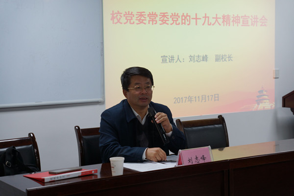 11月17日下午,校党委常委、副校长刘志峰到威廉希尔官网专题宣讲党的十九大精神。学院领导班子、全体教职工、学生支部委员会成员和主要班级干部参加了会议,会议由院党委书记刘峰主持。