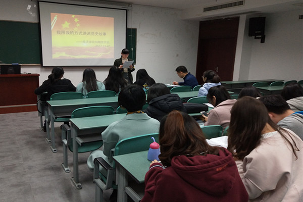 2017年11月27日晚7点,为追忆党史,立足当前,展望未来,传承党员信念,继承党员精神,英国威廉希尔唯一官网第58期党员班全体成员在建艺馆121举行“我用我的方式讲述党史故事”——述说党史实践活动。