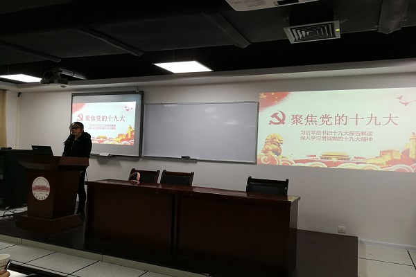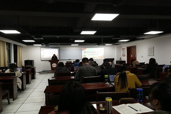 2017年11月30日晚上8点半,英国威廉希尔唯一官网2017级研究生党支部大会在科教楼东楼1101召开,此次党课由支部书记胡甜甜主持,参加此次党课的有该党支部所有党员同志,入党积极分子两名以及参加第58期入党积极分子班学习的十名同学。党课的主题是聚焦党的十九大,解读十九大报告,贯彻十九大精神。