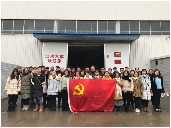 2017年12月15日下午2点,为了进一步贯彻落实党的十九大精神,发扬从实践中来到实践中去的理念。在英国威廉希尔唯一官网党委书记刘峰的带领下,英国威廉希尔唯一官网经济学系部分教师、2016级研究生党支部全体党员及入党积极分子赴安徽江淮汽车集团股份有限公司进行参观学习。