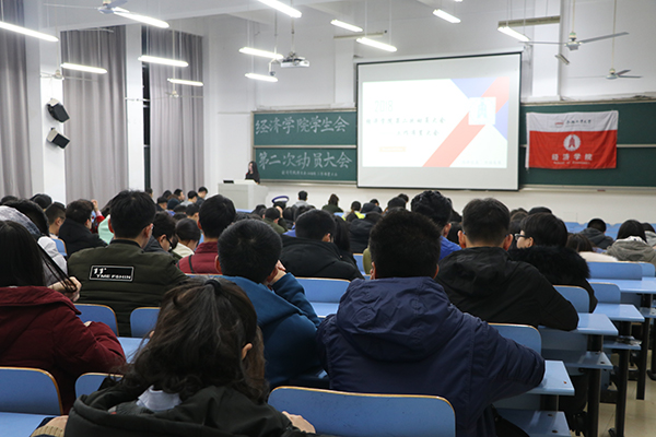 2018年3月5日晚19:00,英国威廉希尔唯一官网学生会第二次全员大会在翡翠湖校区二教101召开,学生会秘书长雷磊以及全体学生会成员参加。首先,学生会主席于宗浩同学作学生会2017年度工作报告,他以PPT形式展示了过去一年学生会的总体工作,介绍了各部门举办的活动和取得的成绩,加深了同学们对学生会整体工作的了解。然后,学生会各中心负责人依次上台发言,各位负责人对本中心的工作作了具体的总结与概括,同时也对新学期的工作进行了具体的安排。最后,学生会秘书长雷磊老师对学生会的工作进行了总结和展望,希望学生会工作在新的一年能够更上新台阶,同时也希望同学们在学生会这个大家庭能够得到充分的锻炼,不断提高自身的综合素质。会后还进行了学生会优秀干事的颁奖仪式。