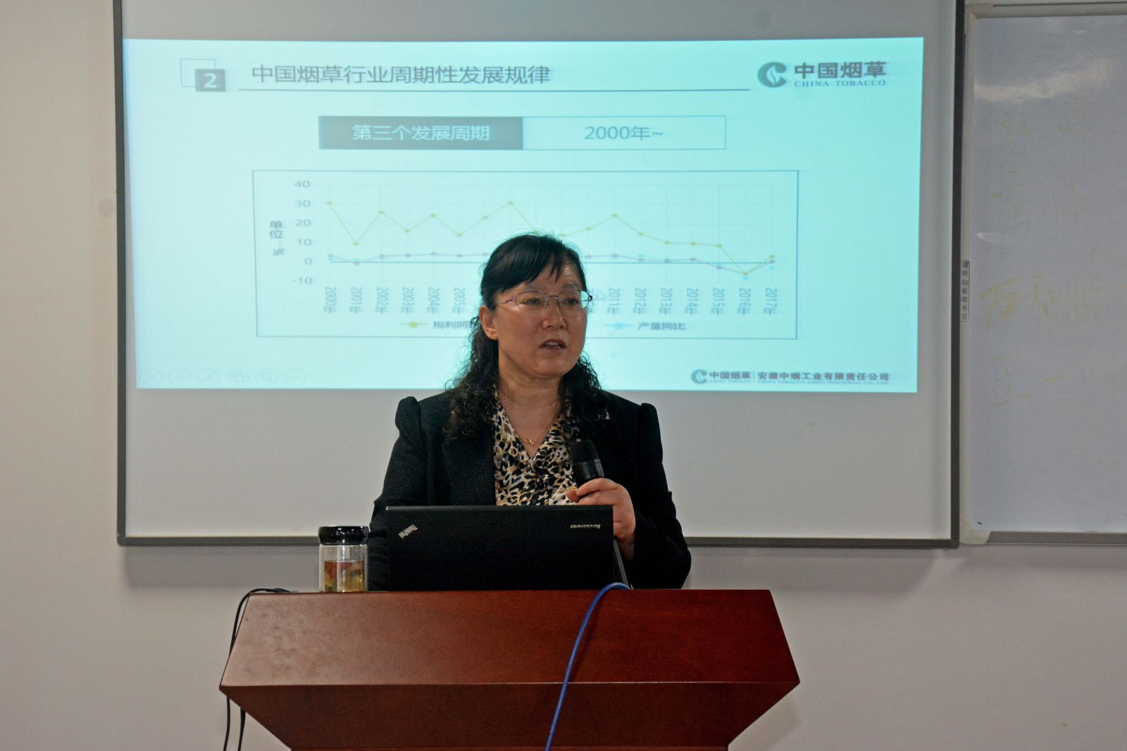 报告中张艳女士以老师的身份,围绕中国烟草行业这个话题,首先介绍了安徽中烟的有关概况,随后重点叙述了烟草行业的周期性发展规律,为我们讲解了至今中国烟草行业的三个周期,接着张博士详细讲解烟草行业的未来发展趋势,给我们展示了科学的预测。最后,张艳老师根据自己在安徽中烟多年,分享了自己的两点体会:第一,产学研日益深度融合是经济社会高质量发展的必由之路;第二,学好本领,才能拥抱未来。老师希望这两点体会可以帮助同学们在学习和工作生活中更进一步。