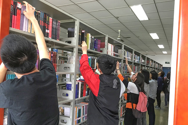 5月12日,全体学员们赴翡翠湖校区图书馆进行图书分类整理。面对杂乱摆放的书籍、布满灰尘的书架,学员们认真整理,从未抱怨,并且在整理书架的过程中相互帮助、协调合作。劳动中的同学们没有丝毫的敷衍与懈怠,并且最大限度地降低音量以不妨碍正在阅览书籍的同学,至始至终都在用实际行动践行为人民服务的党员精神。默默的劳动,无私的服务,学员们身体力行,发挥了模范带头作用。