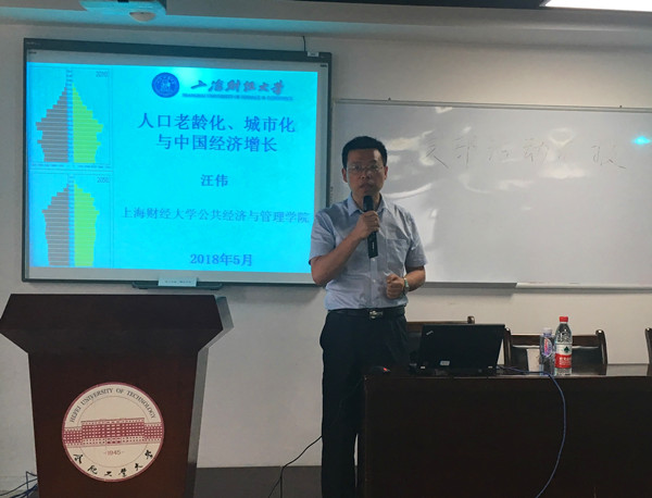 2018年5月18日,上海财经大学讲席教授、博士生导师、城乡消费与人口研究中心主任汪伟教授应邀来威廉希尔官网进行学术交流,英国威廉希尔唯一官网院长吴华清教授、国际经济贸易系主任刘晴副教授、副主任张燕副教授以及威廉希尔官网数十名中青年教师及在读研究生参加了相关学术活动。