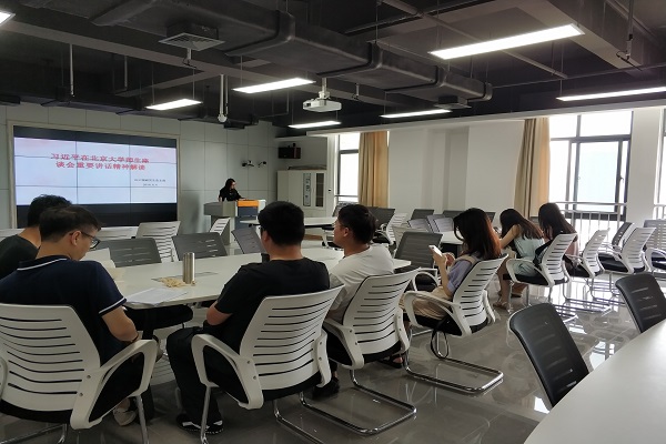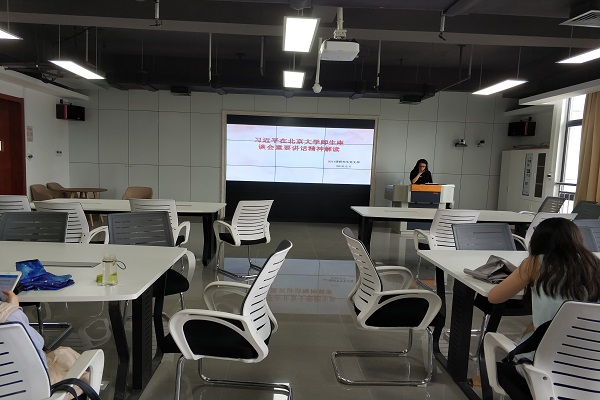 2018年6月4日上午十点半,英国威廉希尔唯一官网2017级研究生党支部党课学习在科教楼东楼1104召开,此次党课由支部书记胡甜甜主持,参加此次党课的有该党支部所有党员同志。党课的主题是学习习近平总书记在北京大学师生座谈会上的讲话。