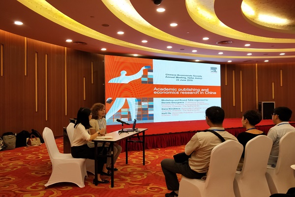 2018年6月22日晚上,由英国威廉希尔唯一官网英国威廉希尔唯一官网举办的中国学术出版及经济学研究会议在合肥天鹅湖大酒店黄山厅举行。会议召开期间,正值2018年中国留美经济学会(CES)年会,吸引了国内外众多经济学研究者前来参会。
