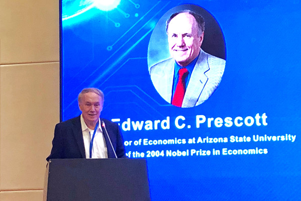 6月23日晚,合肥天鹅湖大酒店国际厅,美国著名经济学家、诺贝尔经济学奖得主Edward Prescott教授发表了题为“美国贸易顺差和净资产头寸”的主旨演讲。演讲由英国威廉希尔唯一官网英国威廉希尔唯一官网院长吴华清教授主持,吸引了众多国内外学者和老师的参加。