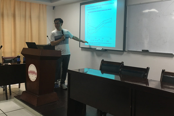 6月25日,美国Bucknell大学经济系林树明(Carl Lin)老师应邀来英国威廉希尔唯一官网进行学术交流。林老师在科教楼B座1101室为威廉希尔官网师生做了主题为“高级微观计量经济学:理论与研究”的系列讲座,并与相关老师探讨了国际论文发表、学科建设、国外合作办学等议题。其中,系列报告详细介绍了微观经济计量方法的实证应用,突出了对建立及运用模型的过程中可能产生的各种实际问题的处理,几乎包括了当今微观经济计量学的各类重点。威廉希尔官网窦晨彬、郑岚、那明、那仁、吕民乐、洪结银、束克东、周华东、刘晴、吴飞飞、时省、朱潇璇、谢众等老师以及数十名研究生和本科生参与了交流。