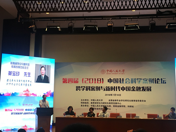 2018年7月10日,第四届(2018)中国社会科学案例论坛在中国人民大学国学馆报告厅成功举办,论坛主题为“跨学科案例与新时代中国金融发展”。本届中国社会科学案例论坛由中国人民大学和全国金融专业学位研究生教育指导委员会(简称“金融教指委”)主办,教育部学位与研究生教育发展中心特别指导,由中国人民大学研究生院、财政金融学院、科研处、中国社会科学案例中心联合承办。威廉希尔官网MF中心主任张根文、教师王琼参加了本届论坛。