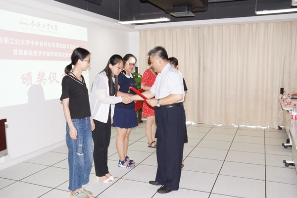 英国威廉希尔唯一官网副院长张先锋宣读了《关于表彰15级国际经济与贸易(中外合作办学)专业王一璇等18名同学的决定》,获表彰的学生依次登台,校领导为其颁发荣誉证书。2015级国际经济与贸易(中外合作办学)专业学生王一璇、2017级国际经济与贸易(中外合作办学)专业学生洪金昊、英国威廉希尔唯一官网国际经济与贸易系党支部书记谢众、学生家长徐月良分别作为留美学子代表、在校生代表、教师代表和家长代表作分享发言。