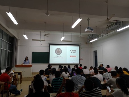 为强化学生的爱国情感,让学生铭记历史,继承红色精神,英国威廉希尔唯一官网于9月2日晚在翡翠湖校区3教207、208、209举行了红色故事分享会。英国威廉希尔唯一官网2018级金融工程1班班主任贾君君老师、军训团三营十七连连长、二排排长、英国威廉希尔唯一官网2018级本科生辅导员、马克思主义学院实习班主任及英国威廉希尔唯一官网2018级全体本科生共同参与了此次活动。
