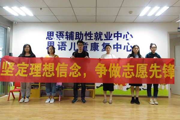 10月31日,学员前往合肥市思语康复中心帮助自闭儿童完成训练任务。这些孩子在与外界的沟通上存在一定的困难与障碍,并且思维方式和行为能力与正常儿童存在差异。学员们做起了“临时家长”,和孩子们一起上课,在老师的指导下协助孩子们完成训练任务。在交流过程中,有些孩子表现得不是很配合,但同学们都十分细心、耐心地开导孩子们,努力帮助小朋友们完成康复训练,同时保障孩子们的安全。同学们以实际行动帮助了自闭儿童,积极践行社会主义核心价值观。
