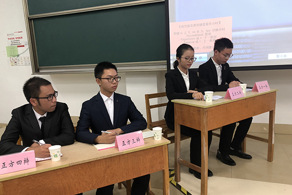 首先进行的是三、四名决赛,由金融工程18-1班对阵国际经济与贸易(中外合作办学)18-1班,本场比赛的辩题为“成功更有利于个人成长还是挫折更有利于个人成长?”。反方强调挫折更有利于成长,并通过实际案例阐明了己方观点。而正方则从成功有利于成长展开辩论,并且紧紧抓住成功这一关键词占据了优势。双方辩手一次又一次的精彩辩论把比赛推向高潮,最终国际经济与贸易(中外合作办学)18-1班胜出。