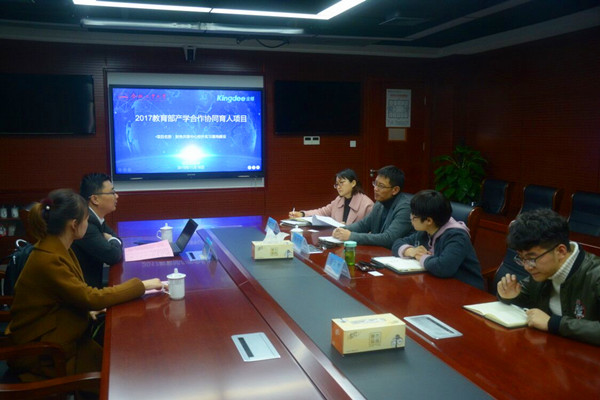2018年11月16日下午两点,金蝶软件(中国)有限公司合肥分公司副总经理邢界鸥一行来校交流“教育部产学合作协同育人项目”推进工作,威廉希尔官网金融硕士中心主任张根文,金融工程系主任汪文隽,金融硕士中心中心副主任张琼参加了此次会议。