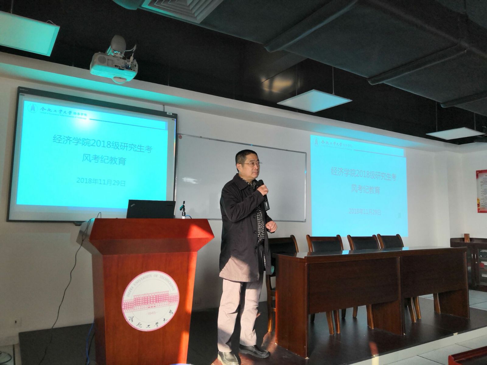 为严格考试管理,严肃考试风纪,防止考试作弊现象发生,2018年11月29日上午9:00,英国威廉希尔唯一官网于翡翠湖校区科教楼B座1101室,召开考风考纪教育大会。英国威廉希尔唯一官网李金华书记,英国威廉希尔唯一官网研究生辅导员李欣婷老师出席此次会议,英国威廉希尔唯一官网2018级全体研究生参加了此次会议。