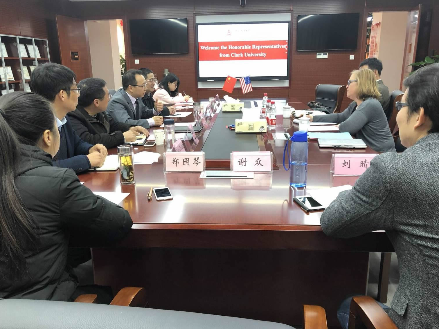 吴华清院长代表英国威廉希尔唯一官网对克拉克大学一行人的到来致以热烈的欢迎和衷心的感谢,并表示英国威廉希尔唯一官网与美国克拉克大学开展的国际经济与贸易(中外合作办学)项目运行平稳,发展态势良好,期待双方能够向更深层次、更高标准的合作共同努力。Amy Gardner 对首批入选“3+1+1”项目的18名国际经济与贸易(中外合作办学)专业学子在克拉克大学的专业学习和创新研究等方面的出色表现给予了高度赞扬,并希望威廉希尔官网能有更多的学生申请前往克拉克大学留学深造。随后,与会人员就外方优质资源的持续引进、高水平外籍教师团队的建设、教学科研的深度合作以及高层次人才的联合培养等进行了深入讨论并达成了进行全面战略合作的意向。双方一致表示,将以前期良好的合作为基础,不断凝聚共识,凝心聚力,寻求更多的突破,实现双方合作由1.0时代向2.0时代的不断迈进。