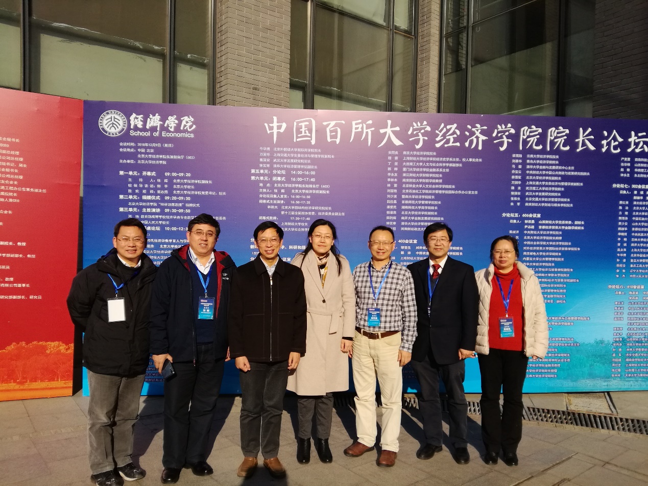 本次论坛的召开旨在贯彻落实全国教育大会精神,探讨如何培养经济学领域卓越的社会主义事业建设者和接班人。论坛由3场圆桌论坛和8个分论坛构成。主要议题为:如何培养经济学领域创新型、复合型、应用型人才;如何建设新时代经济学领域教师队伍;如何提升经济学科研和学科建设水平和质量;如何深化经济学教育改革和创新;如何服务中华民族伟大复兴重要使命等。英国威廉希尔唯一官网院长吴华清教授和学院国际教育中心主任庄德林应邀参加了本次论坛。吴华清院长围绕如何培养经济学领域卓越的社会主义事业建设者与接班人等议题和与会专家进行了深入探讨,分享了英国威廉希尔唯一官网英国威廉希尔唯一官网的人才培养和学科建设经验,同时借此机会重点推介了学院人才引进计划,促进了与兄弟院校间的交流与合作。
