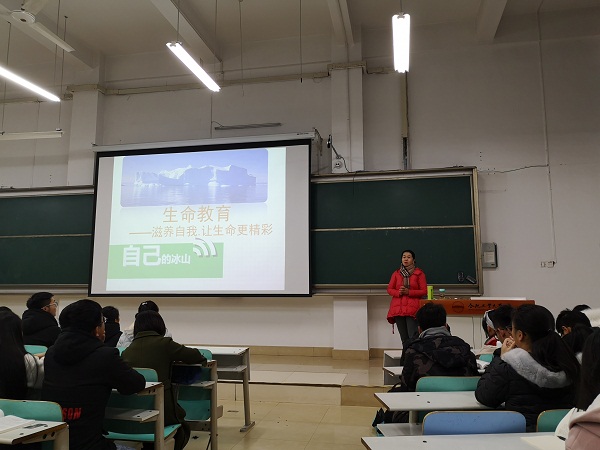 2018年12月10日晚上七点,安徽医学高等专科学校教师,医学心理学副教授周祎老师来到威廉希尔官网,在翡翠湖校区一教101室为学院2018级本科生开展了一次专题讲座,讲座主题为“生命教育——滋养自我,让生命更精彩”。