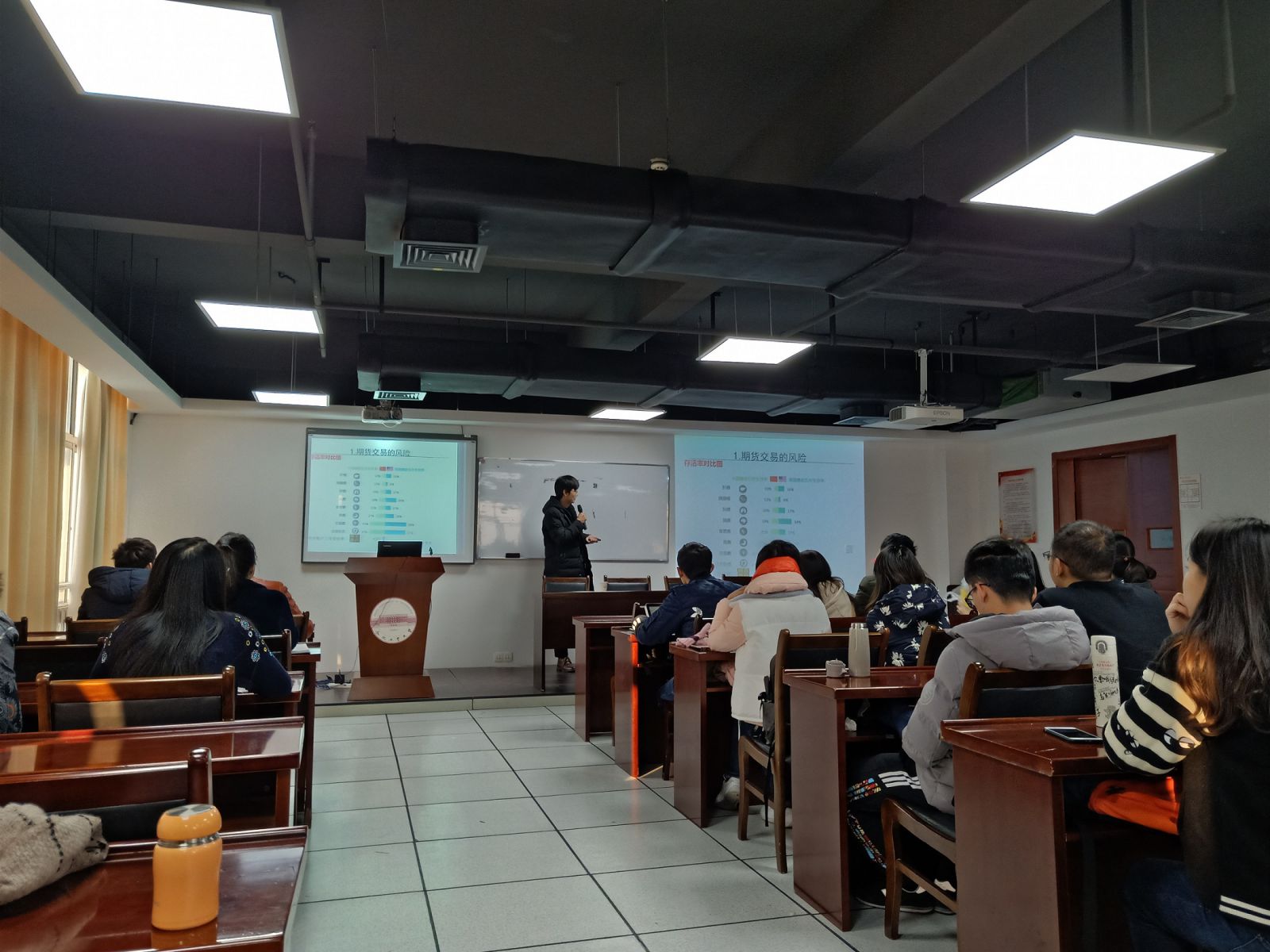 2018年12月16日上午8点30分,量化投资系列课程讲座第二次课程于翡翠湖校区科教楼B座1101室开展。本次课程讲座的主题是“如何在期货市场上长期生存”。徽商期货研究所的程序化交易员赵杰担任此次课程讲座讲师。