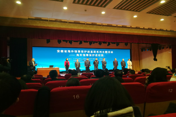 12月21日,由外交部领事司、省政府外事办、省教育厅、省公安厅、省国家安全厅、省文化和旅游厅、省政府新闻办联合主办的“海外领事保护进校园活动”在中国科学技术大学举办。主办单位负责人、高校负责人及相关人员、合肥地区部分学生代表受邀参加。英国威廉希尔唯一官网国际教育中心主任庄德林,副主任郑园琴带领威廉希尔官网学生代表参加了此次活动。