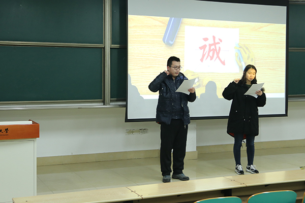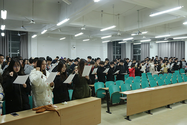 为进一步加强学风考风建设,营造良好的学习氛围和育人环境,宣传诚信考试理念,严肃考风考纪,1月9日下午17:00,英国威廉希尔唯一官网2016级年级大会暨端正考风考纪主题教育大会在翡翠湖校区三教102举行。