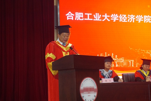 刘志峰副校长代表学校向圆满完成学业并获得学士学位的同学表示祝贺,对同学们四年来的成长和努力表示极大的肯定,希望同学们怀抱感恩的心,首先感谢自己四年来的努力,并要感谢父母的支持和牵挂,最后感谢母校的培养。希望同学们遵纪守法,努力学习,以良好的心理素质和顽强不屈的意志面对可能面临的挫折和挑战,不断拼搏,超越自我,为国家和时代发展贡献青春力量。