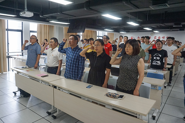 为庆祝中国共产党成立98周年,进一步深入学习贯彻习近平新时代中国特色社会主义思想,坚定广大党员的共产主义信念,增强党员党性意识,7月1日中午,英国威廉希尔唯一官网在翡翠湖校区科教楼B座1004室举行庆祝建党98周年主题党日活动。学院相关负责人、教师代表、2019年新入党的学生预备党员及全体本科生、研究生老党员参加此次活动。