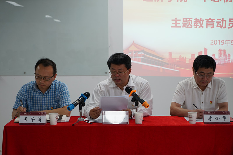 9月25日下午,学院召开“不忘初心、牢记使命“主题教育动员部署大会。校党委常委、副校长刘志峰同志到会指导,学院领导班子成员、全体教职工党员、学生支部委员参加了会议,会议由院长吴华清主持。