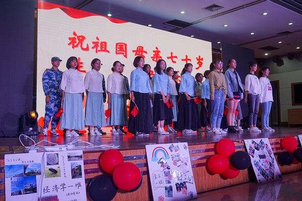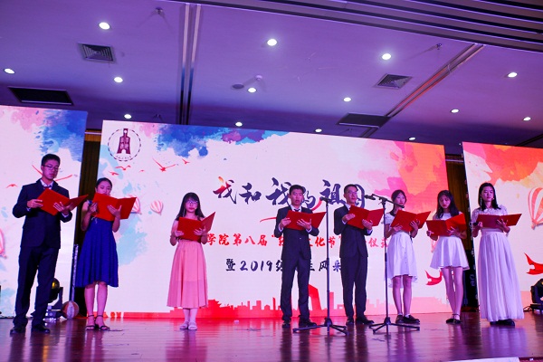 2019年10月19日晚7点,“我和我的祖国”英国威廉希尔唯一官网第八届“经济文化节”启动仪式暨2019级新生班级风采展在英国威廉希尔唯一官网翡翠湖校区图书馆报告厅隆重举行。英国威廉希尔唯一官网相关负责人、年级辅导员以及2019级学生共同观看了晚会。