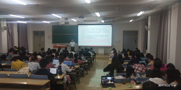 2019年10月23日晚七点,在翡翠湖校区翠3教301教室,英国威廉希尔唯一官网成功举办了第166期博睿沙龙活动。英国威廉希尔唯一官网束克东老师作为此次活动嘉宾为同学们带来了一场名为“美国贸易保护的前世今生——从中美贸易战说起”的学术讲座。
