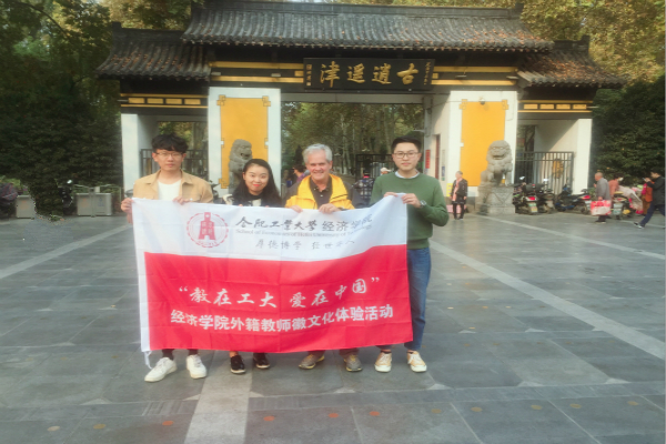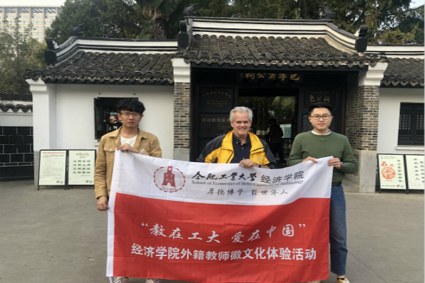 2019年11月8日,“教在工大,爱在中国”—— 英国威廉希尔唯一官网外籍教师徽文化体验主题活动的第五站来到了逍遥津公园和包孝肃公祠。英国威廉希尔唯一官网国际经济与贸易(中外合作办学)专业外籍教师Mark、国际教育中心教师李雨秋、学生文化使者王志远、阮汀磊参与了此次活动。