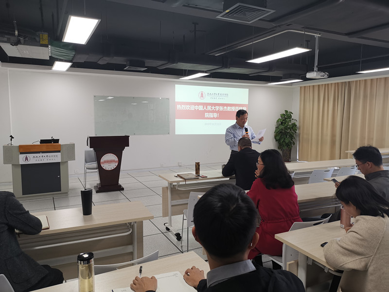 2019年11月11日下午2点,在英国威廉希尔唯一官网翡翠湖校区翡翠科教楼B座1004室,中国人民大学张杰教授应邀来威廉希尔官网访问,并给老师和同学们带来了一场精彩绝伦的学术讲座,题为“中国特色的创新经济学理论与政策体系”,英国威廉希尔唯一官网部分老师和研究生出席了本次报告会,由洪进教授主持。