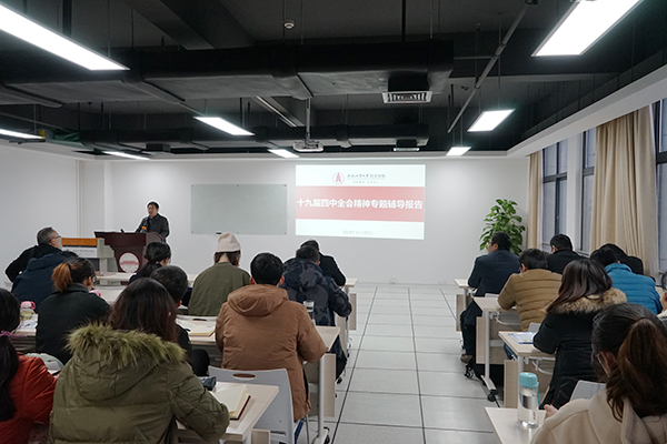 11月27日下午,威廉希尔官网学习十九届四中全会精神宣讲会在翡翠湖校区科教楼B座1004室举行,学院党委书记李金华作宣讲。学院教职工、研究生以及学生党员参加宣讲会。